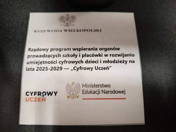Powiat wrzesiński w 2025 roku pozyskał dofinansowanie z Rządowego Programu wspierania organów prowadzących szkoły i placówki w rozwijaniu umiejętności cyfrowych dzieci i młodzieży na lata 2025- 2029 „Cyfrowy Uczeń”